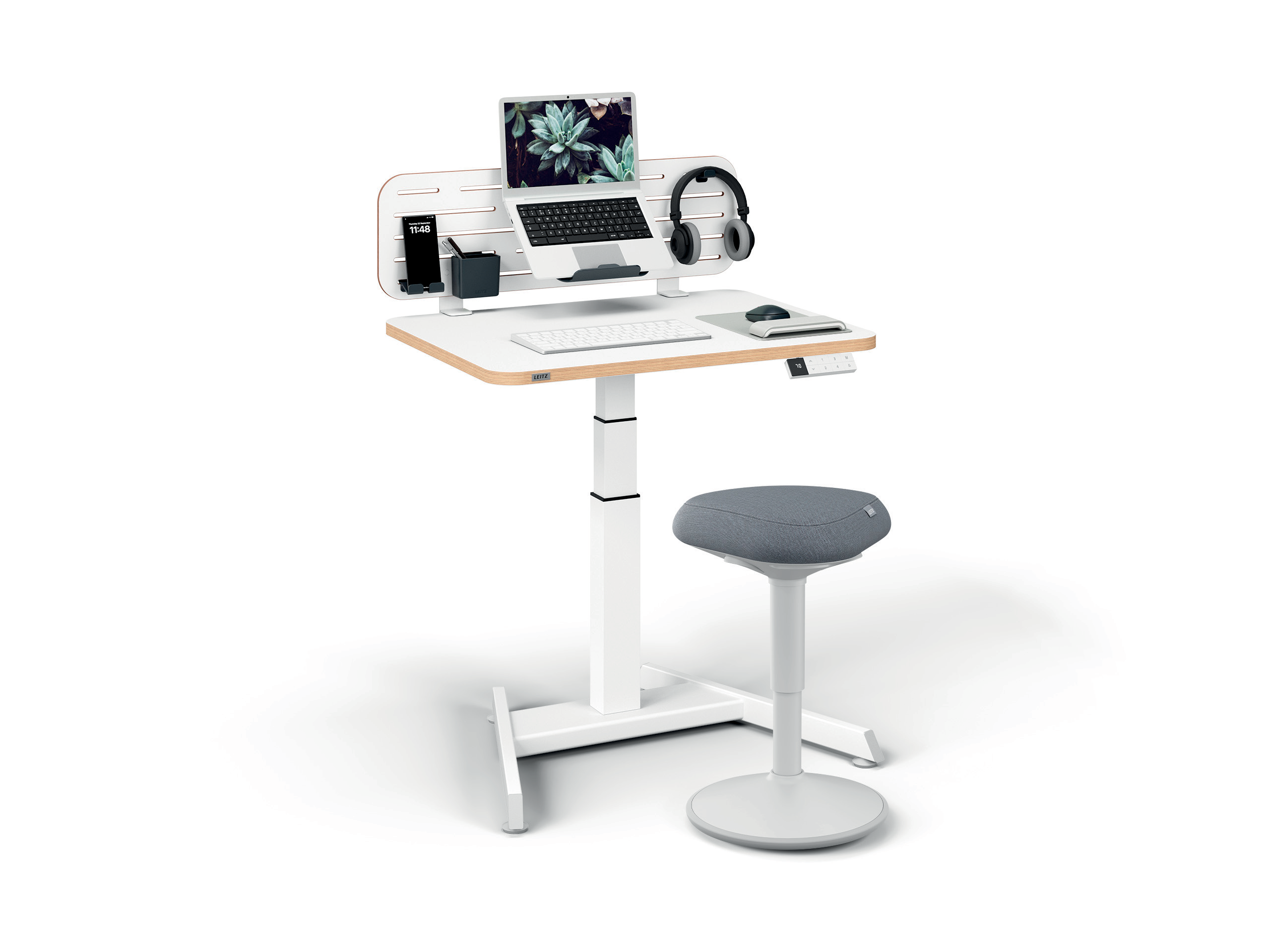 Niewielkich rozmiarów biurko do pracy na stojąco i siedząco zaprojektowano tak, aby ulepszyc i wynieśc Twoje miejsce pracy na nowy poziom!