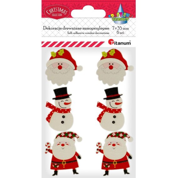 Dekoracje samoprzylepne drewniane Boże Narodzenie na piance 3D 6szt. (3x2szt.) 414471 TITANUM