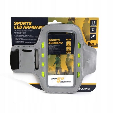 Etui/opaska na ramię do telefonu PLATINET z diodami led szare (43709)