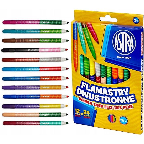 Flamastry dwustronne zestaw 12 sztuk = 24 kolory pisaki mazaki 314118001 ASTRA
