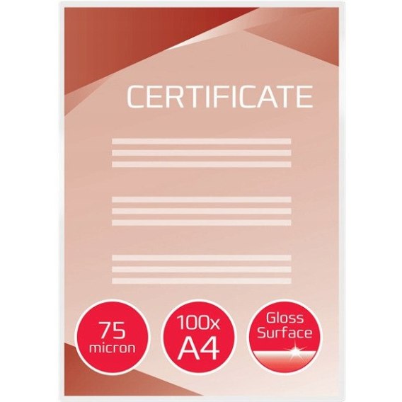 Stworzona tak, aby obramowac papier formatu A4, 2 x 125 mikronów, wykonczenie z polyskiem. Folia umozliwia pozostawienie wystarczającego marginesu na korekte ewentualnego bledu i latwe wyrównanie papieru.