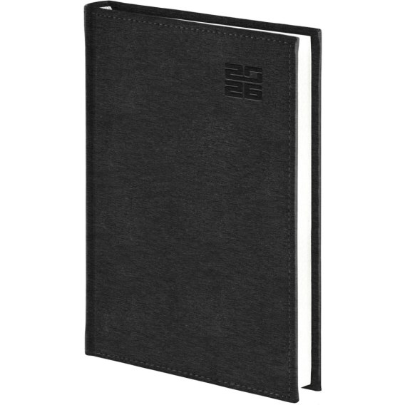 Kalendarz w oprawie z metalicznego materiału o strukturze stali szczotkowanej.
