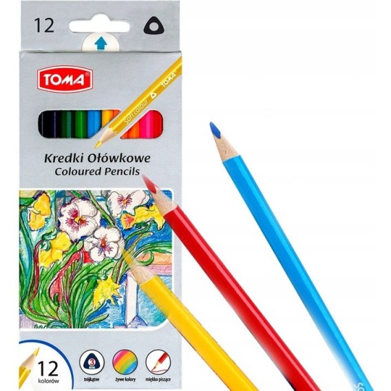 Kredki ołówkowe trójkątne 12 kolorów TO-544 TOMA