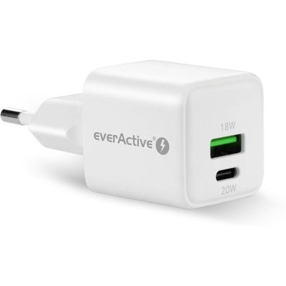 Ładowarka sieciowa 230V EVERACTIVE SC-330Q 1xUSB-A + 1xUSB-C 20W biała