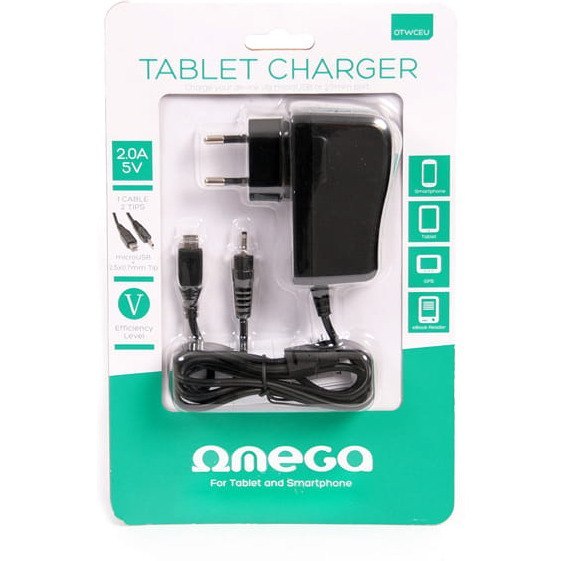 Ładowarka sieciowa 230V OMEGA 1xmicroUSB + 1x2,5x0,7mm 5V 2A 10W czarna (41836)