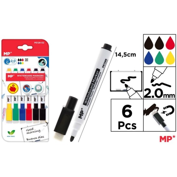 Marker do tablic zestaw 6szt. z magnesem i gumką PE128-02 MP Poland