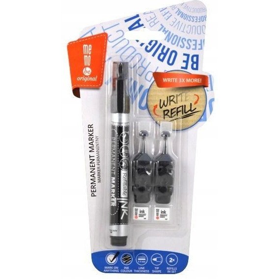 Marker permanentny MEMOBE + 2 ampułki, okrągła końcówka, czarny MM011-02