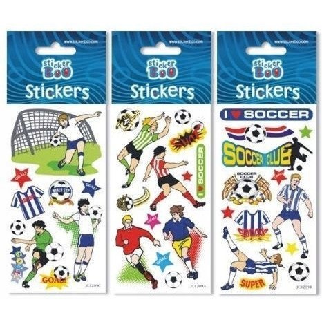 Naklejki z pilkarzami ozdobione srebrną obwódką.