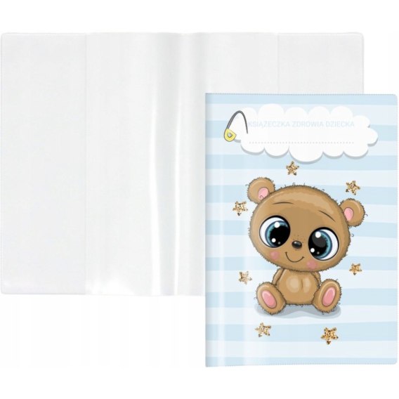 Zadbaj o bezpieczeństwo i estetykę dokumentów Twojego dziecka dzięki uroczej okładce z motywem pluszaka i gwiazdek.