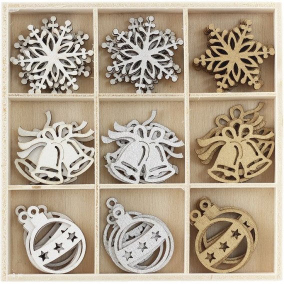 Ozdoby drewniane ŚWIĘTA 2 pudełko 45 szt. 253029 Galeria Papieru