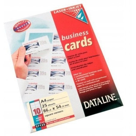 Papier wizytówkowy 86x54mm (25ark.) laser,atrament 10 na stronie 57125 DATA LINE