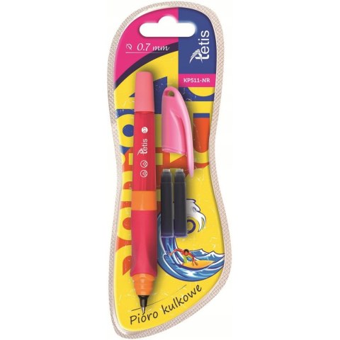 Pióro kulkowe niebieskie obudowa różowa 0,7mm + 2 razy nabój KP511-NR TETIS