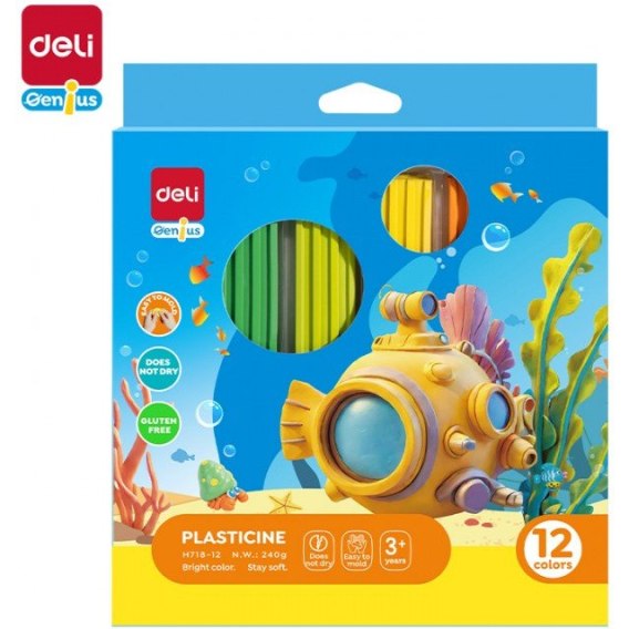 Plastelina 12 kolorów prostokątna EH718-12 DELI