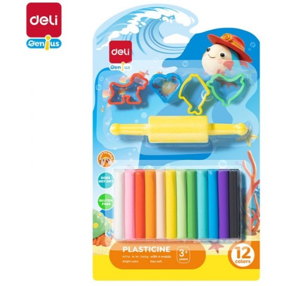 Plastelina 12 kolorów - zestaw z foremkami i wałkiem EH716 DELI