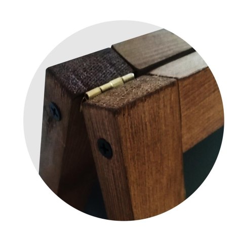 Trwałe zawiasy łączące ramę oraz łańcuszek do regulacji rozstawu nóg zapewniają stabilność potykacza.