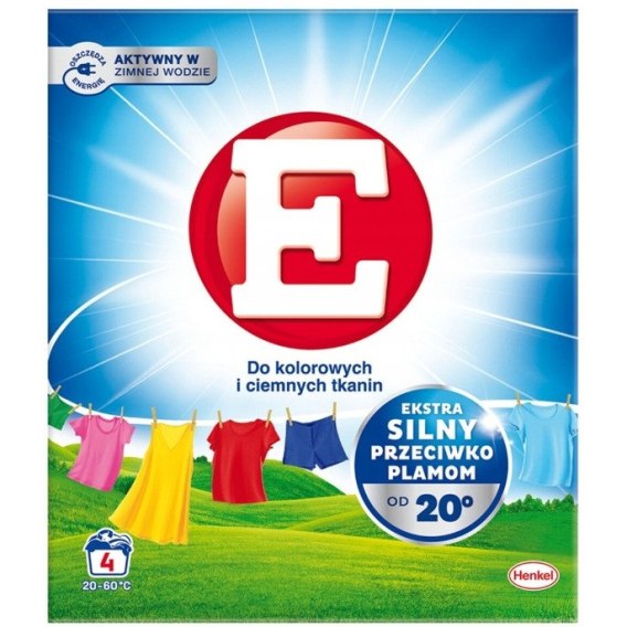 Proszek do prania E, stworzony specjalnie do prania kolorowych tkanin. Dzięki skoncentrowanej formule, detergent skutecznie usuwa plamy i zabrudzenia, jednocześnie chroniąc intensywność kolorów. Idealny do codziennego użytku, zapewnia doskonałe rezultaty w niewielkim opakowaniu.