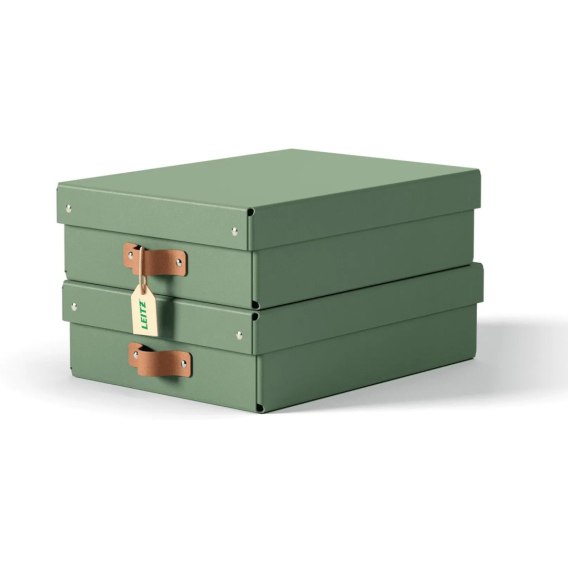 Paleta kolorów ziemi, inspirowana czystością i prostotą natury, idealnie uzupełni wystrój Twoich wnętrz , wprowadzając poczucie spokoju do pomieszczeń, w których przebywasz. Każde pudełko jest wyposażone w skórzany uchwyt, który ułatwia zdejmowanie go z półek. Wyprodukowane we Włoszech. Poczuj się dobrze dzięki Leitz.