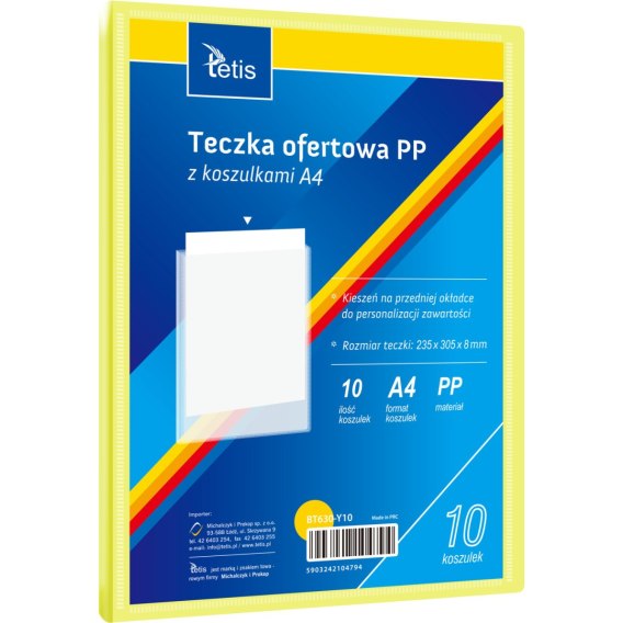 Teczka ofertowa A4 PP 10 koszulek ŻÓŁTA BT630-Y10 TETIS