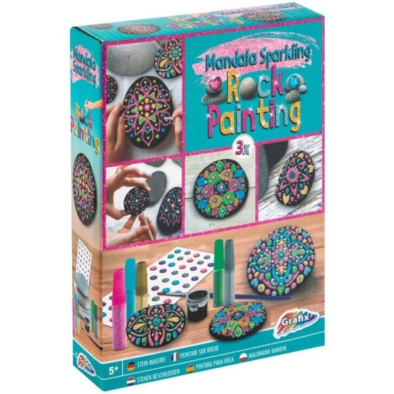 Zestaw do malowania kamieni MANDALA (3x Kamień, 61x Farbka, 5x Farbka w tubce 1x Pędzelek) 200036 MOXY