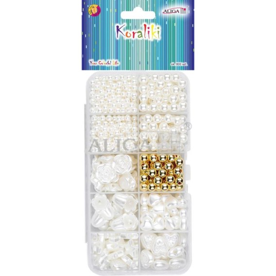Zestaw koralików plastikowych w pudełku mix kształtów i kolorów ok.800szt. PJ-1120 ALIGA