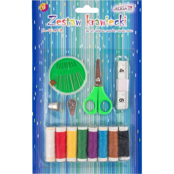 Zestaw krawiecki (igły,nici,nawlekacz,naparstek,nożyczki,miarka,guziki,agrafki) NIT-1078 ALIGA