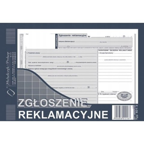 601-3 ZR A5 Zgłoszenie reklamacyjne (oryginał + 2 kopie) Michalczyk i Prokop
