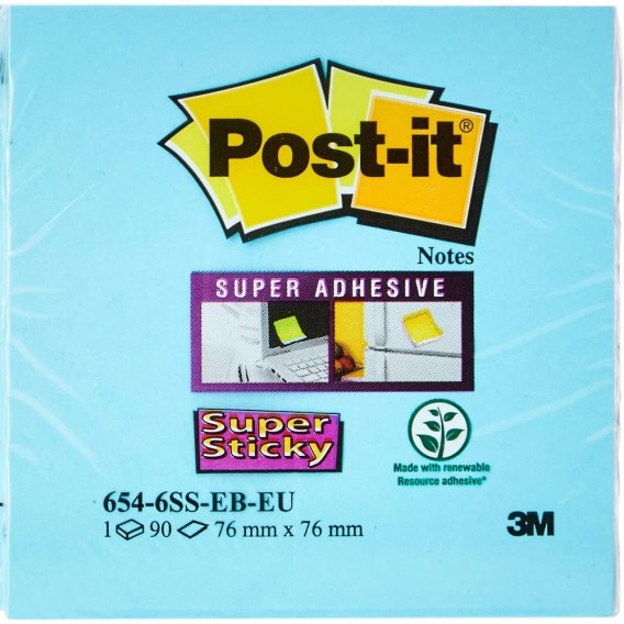 Bloczek samoprzylepny 76x76mm 90k niebieski Super Sticky POST-IT 654-6SS-EB 3M