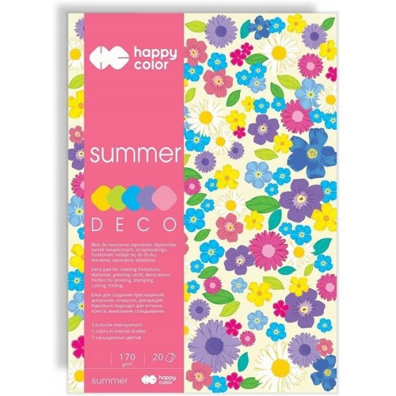Blok DECO SUMMER A5 20k 170g 5 kolorów HA3817 1520-120 HAPPY COLOR