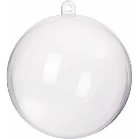 Akrylowa kula o średnicy 12 cm Posiada oczko do nawlekania Można ozdabiać od środka. Kula składa się z dwóch połówek można ją rozłączyć co ułatwia ozdabianie. Świetnie nadają się do ozdabiania różnymi technikami plastycznymi -oklejanie techniką serwetkową, malowanie, oklejanie masą plastyczną, jako baza pod bombkę zrobioną na szydełku