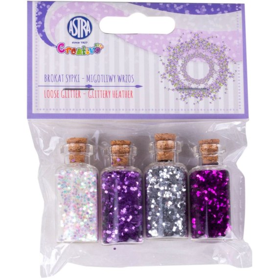 Brokat sypki zestaw 4 buteleczki szklane x 3g Migotliwy wrzos 335121004 ASTRA