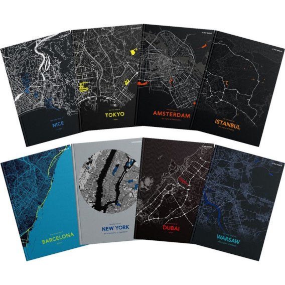 Kolekcja Monochrome Mapping jest to dojrzały i minimalistyczny przekaz w formie map wybranych miast Świata. Z tyłu okładki zawarte są informacje o danym mieście, co dodatkowo podkreśla atrakcyjność kolekcji. Uszlachetnienie okładki matową folią z użyciem lakieru wybiórczego błysk w wybranych elementach daje elegancki wydźwięk. Na wewnętrznej stronie okładki znajduje się ciekawy nadruk z adresówką do opisu.