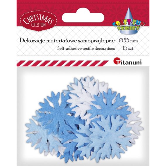 Dekoracje samoprzylepne materiałowe płatki śniegu 35mm 15szt. 461329 TITANUM