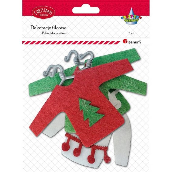 Dekoracje świąteczne filcowe sweterki na wieszakach (6szt.) 412713 TITANUM