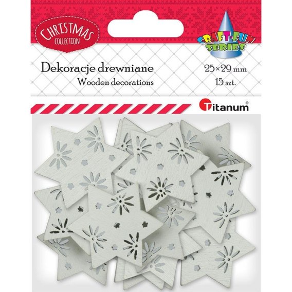 Drewniane gwiazdki ażurowe 25x29mm białe 15szt. 417644 TITANUM