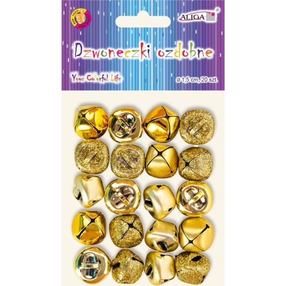 Dzwoneczki ozdobne 1,5cm złote, 20 szt ALIGA DZW-1636