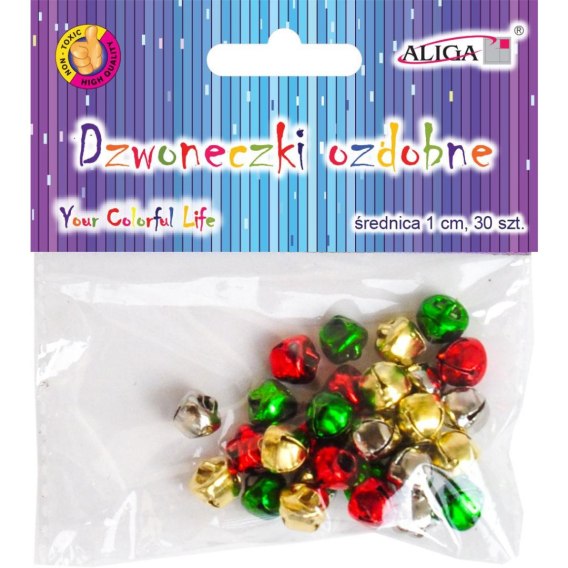 Dzwoneczki ozdobne 1cm, 30 szt. mix kolorów ALIGA DZW-7738
