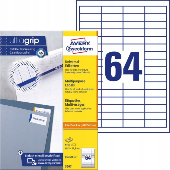 Innowacyjna technologia ultragrip opatentowana przez Avery Zweckform gwarantuje precyzyjne podawanie i równomierne prowadzenie arkusza oraz idealne drukowanie etykiet samoprzylepnych.