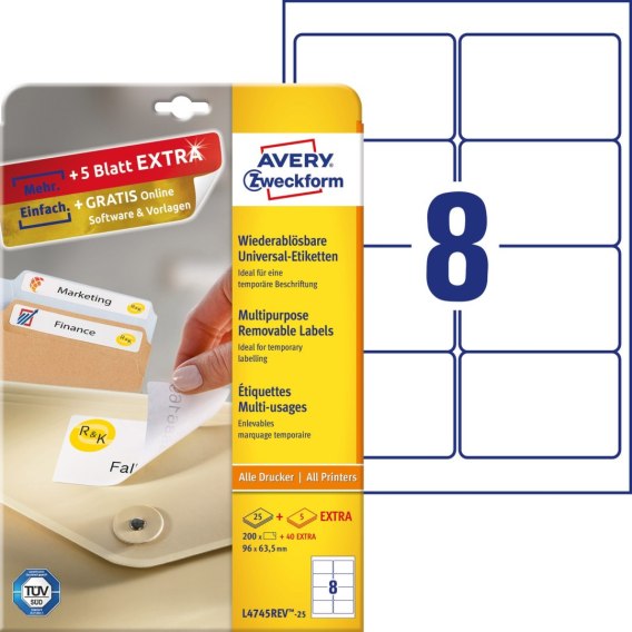 Etykiety A4 białe (25 arkuszy) 96*63,5mm L4745REV-25 AVERY ZWECKFORM