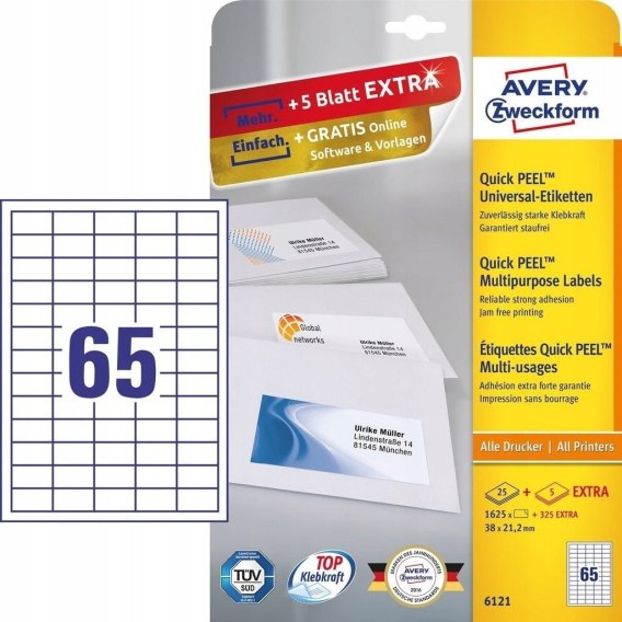 Etykiety A4 białe(30 arkuszy) 38x21,2mm 6121 AVERY ZWECKFORM