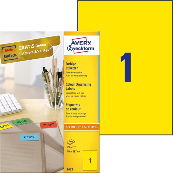Etykiety A4 żółte (100arkuszy) 210x297mm 3473 AVERY ZWECKFORM
