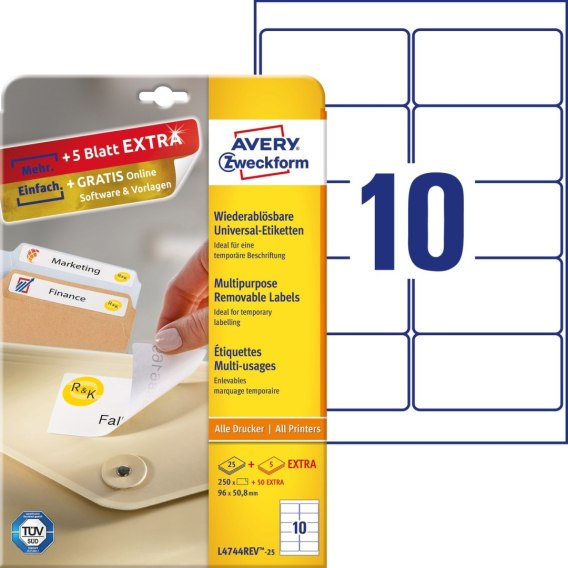 Etykiety białe 96x50,8mm (25 arkuszy = 300 etykiet) L4744REV-25 AVERY ZWECKFORM