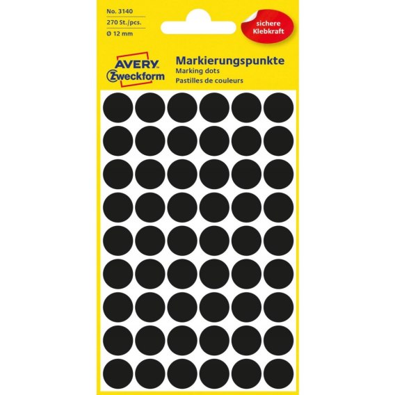 Etykiety kółka Q12mm trwałe czarne 3140 AVERY ZWECKFORM