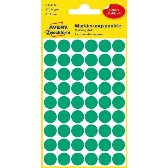 Etykiety kółka Q12mm zielone 3143 AVERY ZWECKFORM