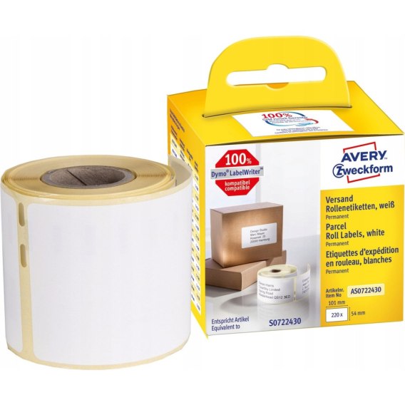 Etykiety wysyłkowe w rolce 220 etyk. 54 x 101 mm, trwałe, białe AS0722430 Avery Zweckform