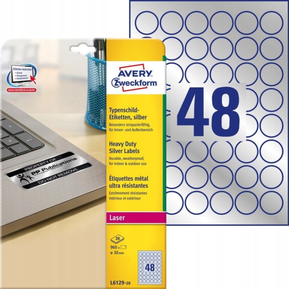 Etykiety znamionowe srebrne średnica Q 30mm L6129-20szt AVERY ZWECKFORM