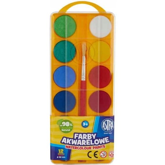 Farby akwarelowe szkolne zestaw 12 kolorów + pędzelek 83216904 ASTRA