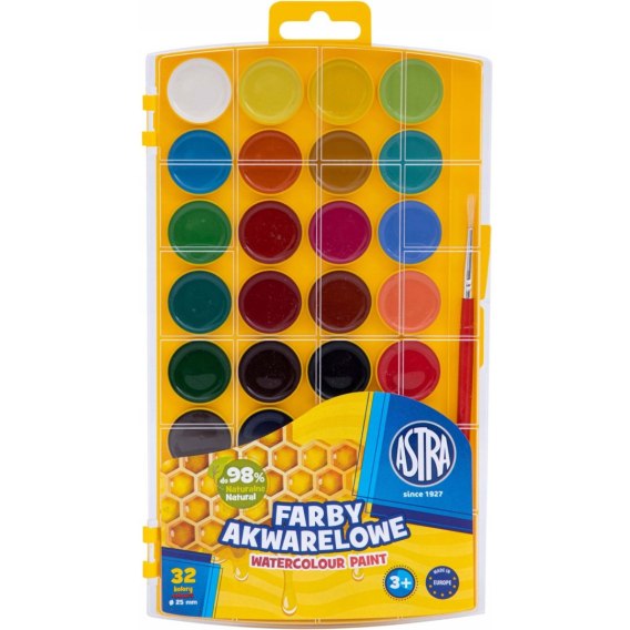 Farby akwarelowe szkolne zestaw 32 kolory + pędzelek 302023002 ASTRA
