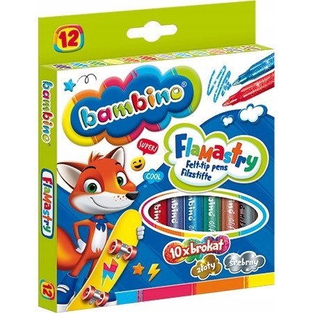 Flamastry brokatowe dla dzieci Zestaw 12 kolorów Pisaki Mazaki BAMBINO St.Majewski