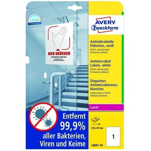 Folia samoprzylepna biała 210x297mm z powierzchnią antydrobnoustrojową L8001-10 AVERY ZWECKFORM