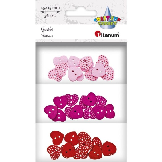 Guziki drewniane serca w kropki 3 kol. 15x13mm 462537 TITANUM
